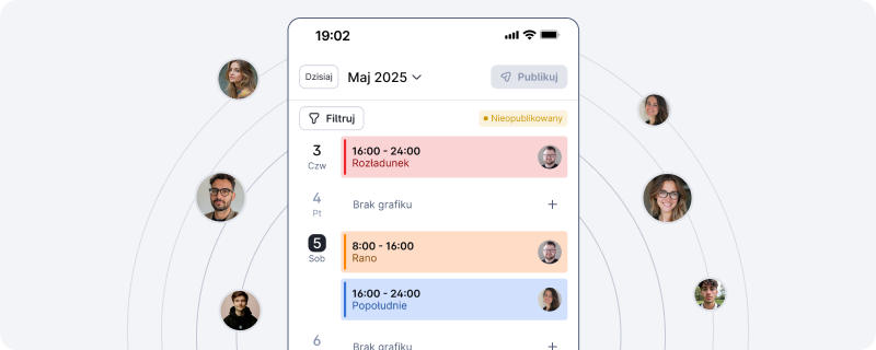 Nowe grafiki obsługujesz z telefonu, kopiujesz/przeciągasz zmiany jak w Excelu. Do końca 2025: Grafik AI (system układa grafik ZA Ciebie, Ty tylko zatwierdzasz jednym kliknięciem).