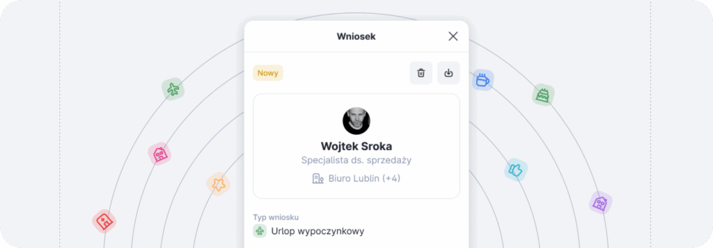 Podtypy wniosków (urlop na żądanie zgodny z Kodeksem Pracy), urlopy godzinowe, nowy kalendarz urlopów (cały zespół na 1 ekranie), kolory i ikony dla szybkiego rozpoznania. Minimalny czas na wysłanie wniosku = koniec z niespodziankami.